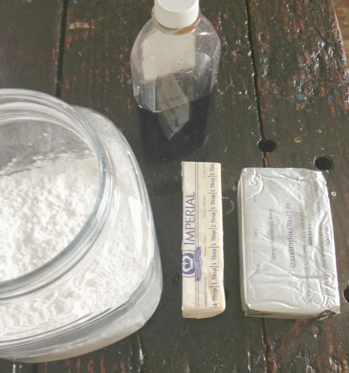 - Cream the butter, vanilla and cream cheese in a mixing bowl.