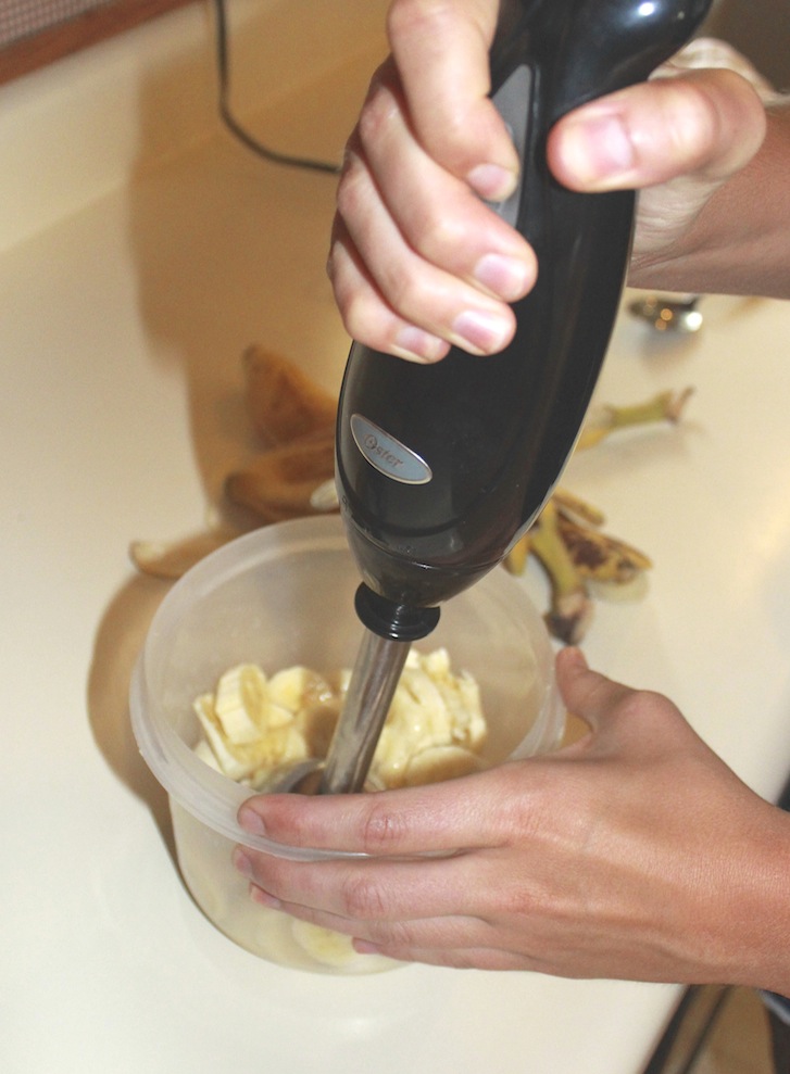 - Blend the sliced bananas.