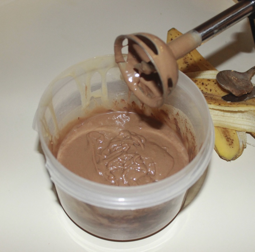 Then she added the cocoa powder. As I’m writing this, I also think a scoop of chocolate protein powder would work great too! My sister will be so proud of my health-boosting idea!