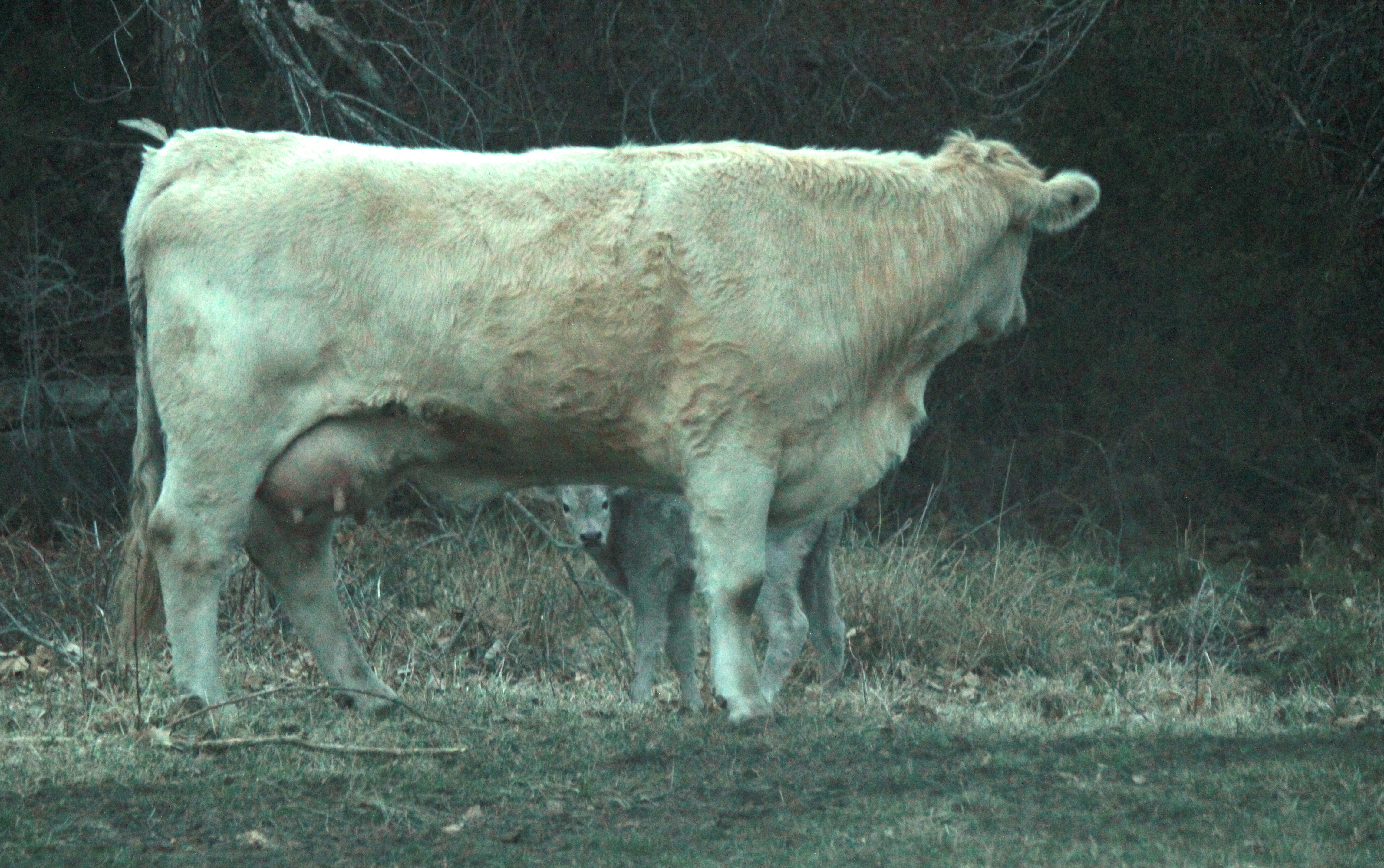 When we awoke the following morning, Dan told me she still hadn’t had the calf. He had been out there at 1 a.m. to check her again. So we got up and dressed and headed down to the pasture once again, crossing our fingers she had a new calf on the ground. She was up and walking around, ready to eat but still… no baby.