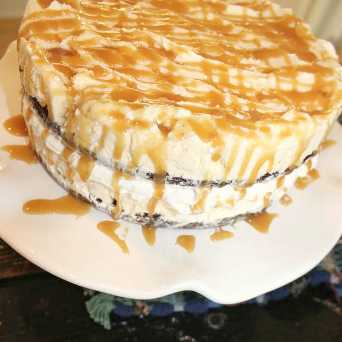 Sweet & Salty Caramel Brownie Pretzel Ice Cream Cake